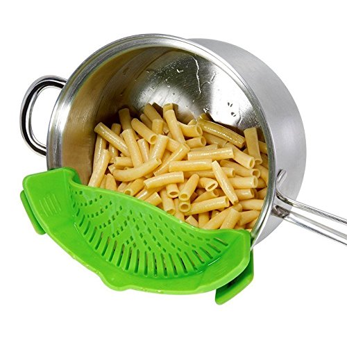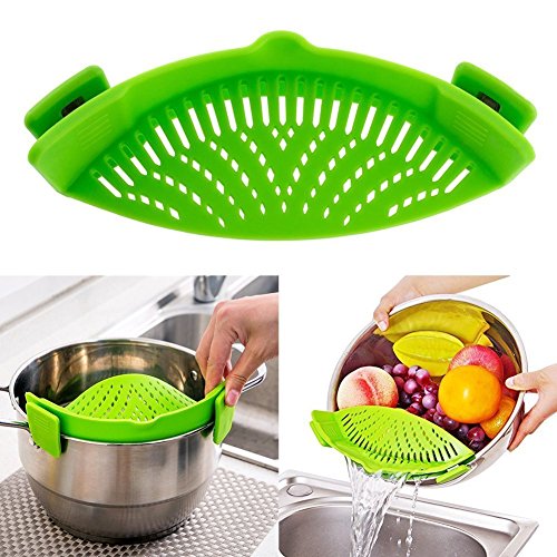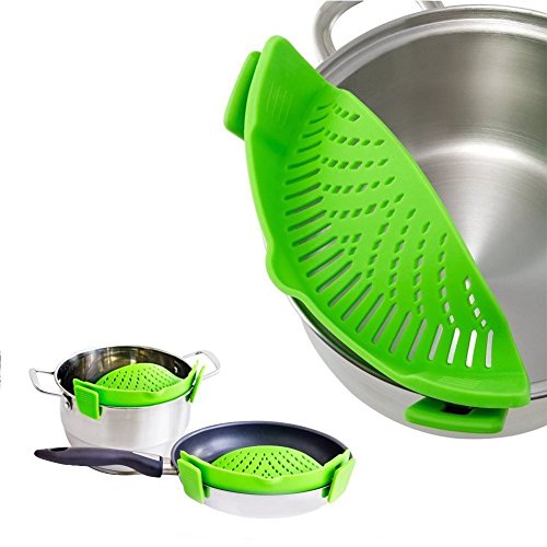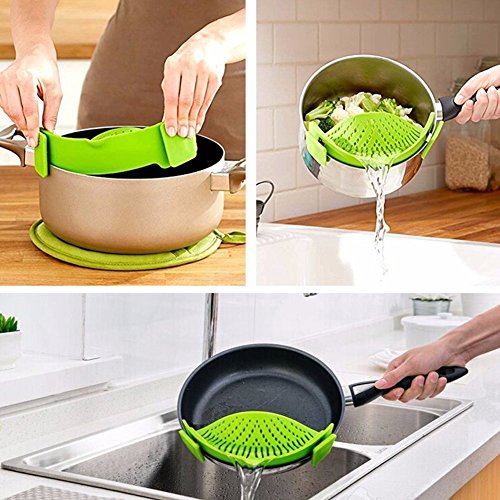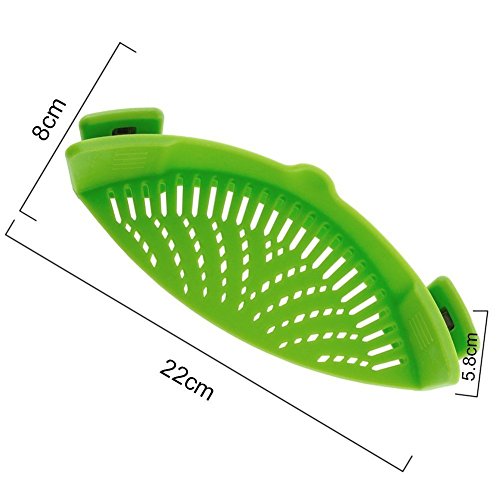 Oumeiou Clip On Silicone Strainer,Snap Strainer for Draining Liquid Universal Size Fits Almost Pans Pots Bowls (Green)