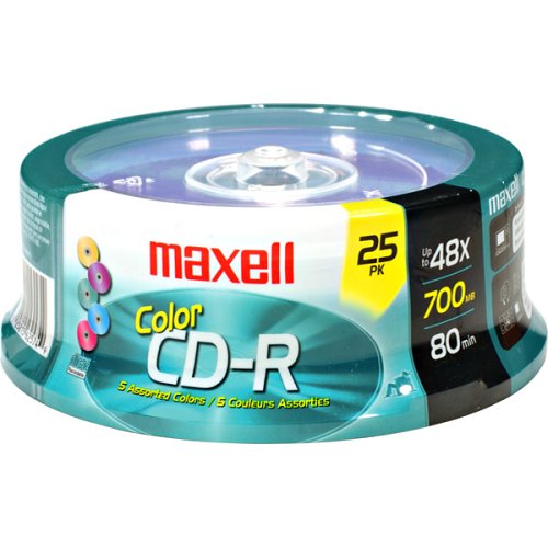 Maxell CD-R Color Blank Media, 25 Pack (648446)