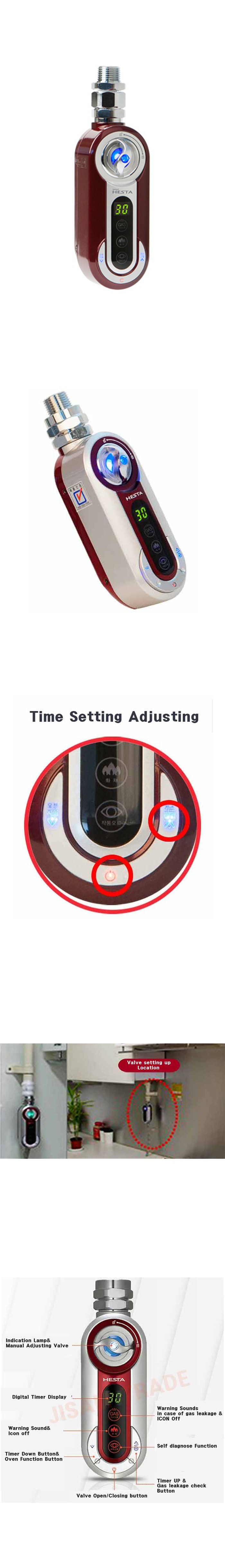 Safe Timer Setting ranging 5minutes ~ 6hours is available,which enables to lock gas valve automatically