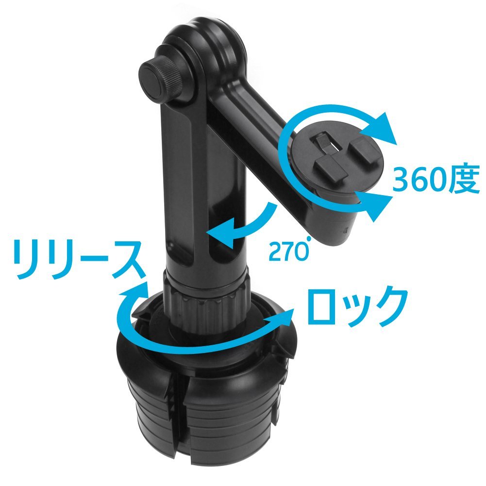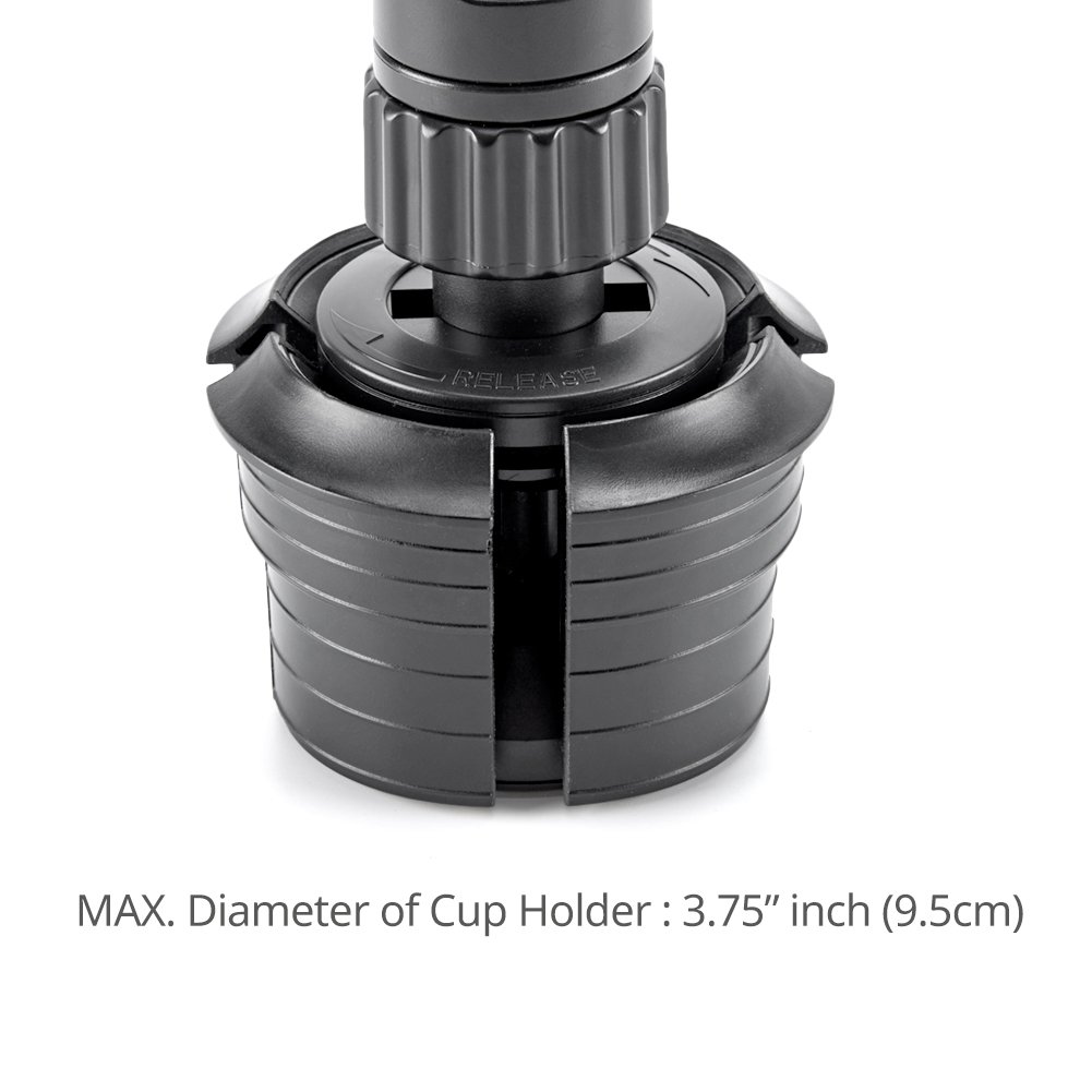 The mount base extends from 2.7 inches (about 67 mm) to 3.75 inches (about 95 mm) to a cup holder for round vehicles and is adjusted to provide a safe and stable fit.
