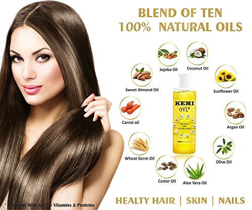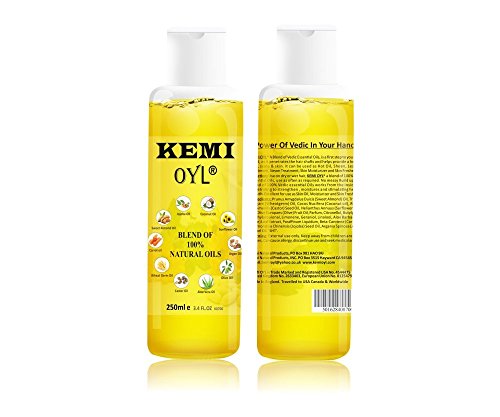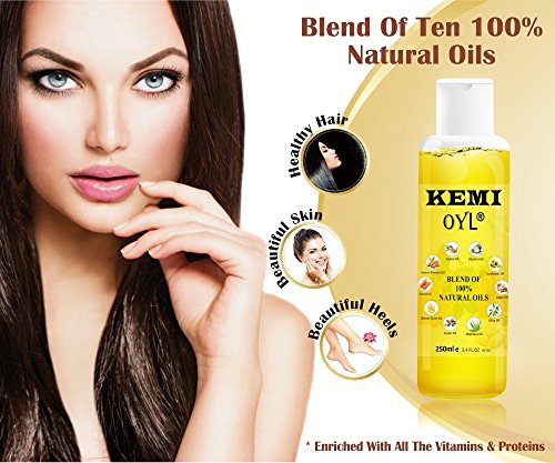 Kemi Oyl blend of ten 100% Vedic/herbal oils, with Vitamin A, B, C, E, D, Healthy hair, skin, heels & nails, Nourishes scalp hair roots, relieve pain, repairs cuticles...