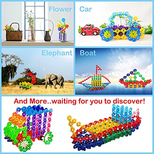 -. Feature : 【Safe & High Quality】: Blocks only made from high quality and non-toxic materials; Durable, BPA free and safe, best toys for age 3+ boys and girls. / 【Firmer Construction Toys】: Unique groove design ensuring firmer construction; never worry about building blocks falling apart. Best decoration for your kiddos' room. / 【Educational Toys】: Playing the building games inspired children's potential. Creativity, Hand-eye Coordination and Engineering Ability improved during funny playing time. / 【Contents】: Snowflake x 300pcs(colors are random), Storage bag x 1, Instruction booklet x 1. / 【Free Yourself】: Keeping kids happily engaged with building blocks, freeing yourself from baby-sitting.