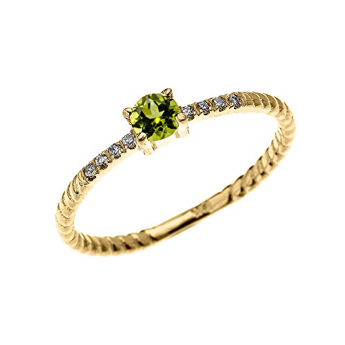 -. Binding : Jewelry -. Brand : Dainty and Elegant Gold Rings -. Department : womens -. Feature : Beautiful dainty round peridot solitaire stackable diamond ring / expertly handmade with 10k yellow gold in fine polished finish / comes with free special deluxe jewelry gift box / made in the USA yet offered at factory direct jewelry price / ships directly from the manufacturer to the customers -. Label : Claddagh Gold -. Manufacturer : Claddagh Gold -. Model : QR1857Y -. MPN : QR1857Y -. PartNumber : QR1857Y -. ProductGroup : Jewelry -. ProductTypeName : FASHIONRING -. Publisher : Claddagh Gold -. Studio : Claddagh Gold -. Title : 10k Yellow Gold Dainty Diamond and Solitaire Peridot Rope Design Stackable/Proposal Ring