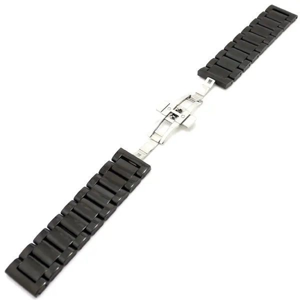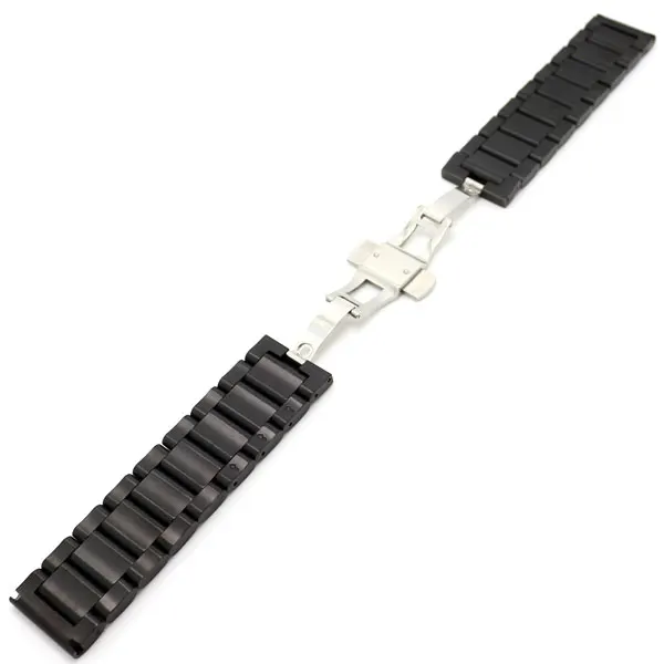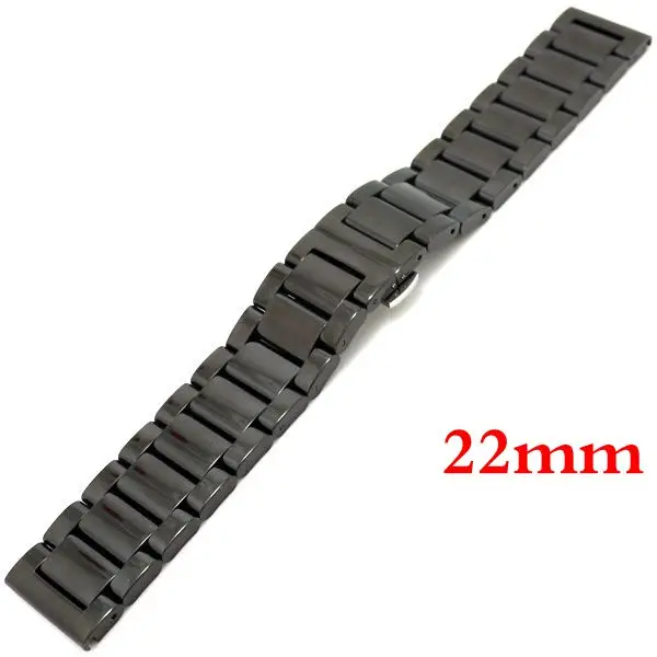 블랙 스테인레스 스틸 팔찌 손목 밴드 시계 스트랩 솔리드 링크 접이식 버클 푸시 버튼 남성 손목 GD0126