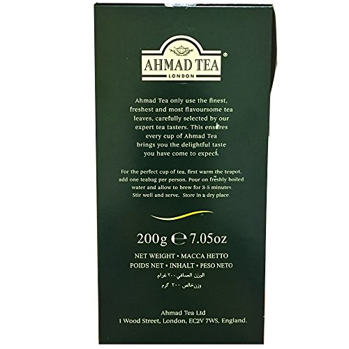 Ahmad Tea only use the finest, freshest and most flavoursome tea leaves, carefully selected by expert Tea tasters. This ensures every cup of Ahmad Tea brings you the delightful taste you have come to expect. Ahmad Earl Grey Tea is a subtle blend of teas, scented with Bergamot. For the perfect cup of tea, first warm the teapot, add one teabag per person, Pour on freshly boiled water and allow to brew for 3-5 minutes. Stir well and serve. Store in a dry place.Feature