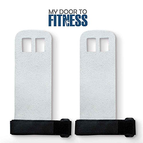 MY DOOR TO FITNESS Leather Hand Grips For WODs, Cross Training, Pull Ups,Powerlifting,Gymnastics & Kettlebells - FREE Pouch for Storage