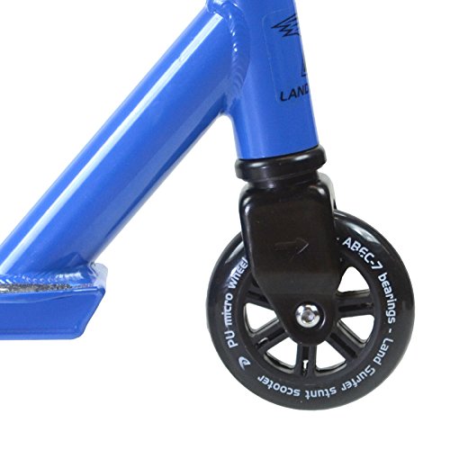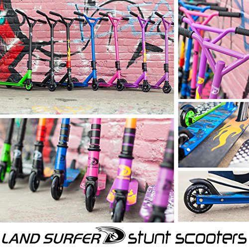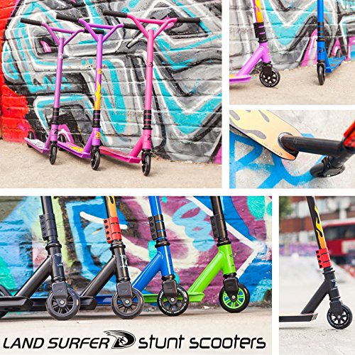 -. Binding : Misc. -. Brand : Land-Surfer -. Feature : 360° SWIVEL REINFORCED GRIPPED DECK - As with any good stunt scooter a fully rotating deck is a must for perfecting and expanding your range of tricks. A gripped base with reinforced underside slide plate. The Landsurfer is a complete scooter designed with tricks in mind and IMPROVED for 2017. / LIGHTWEIGHT & ROBUST - A robust tubular steel frame allows for the use associated with performing tricks in a scooter park but weighs only 3.2kg making the Landsurfer an extremely agile scooter. / MICRO SPEED POLYURETHANE WHEELS - 100mm polyurethane high rebound wheels give a smooth ride in cruising mode while adding comfort when landing tricks or jumps. / 4 BOLT STEM COLLAR - A new and improved 5cm 4 bolt stem collar has been added for 2016 increasing safety by reinforcing the handlebar bond. / STUNT SIZE - 80cm high x 50cm wide 'Y' fluted stunt bar with a 10cm wide x 48cm long deck complete with built in rear stunt heel brake. A 2 piece pop lock assembly secured with a 4 bolt stem collar. All scooters supplied in a carry handle presentation box. -. Label : Bopster -. Manufacturer : Bopster -. MPN : Does Not Apply -. PartNumber : Does Not Apply -. ProductGroup : Sports -. ProductTypeName : SPORTING_GOODS -. Publisher : Bopster -. Studio : Bopster -. Title : Land Surfer Stunt Scooter