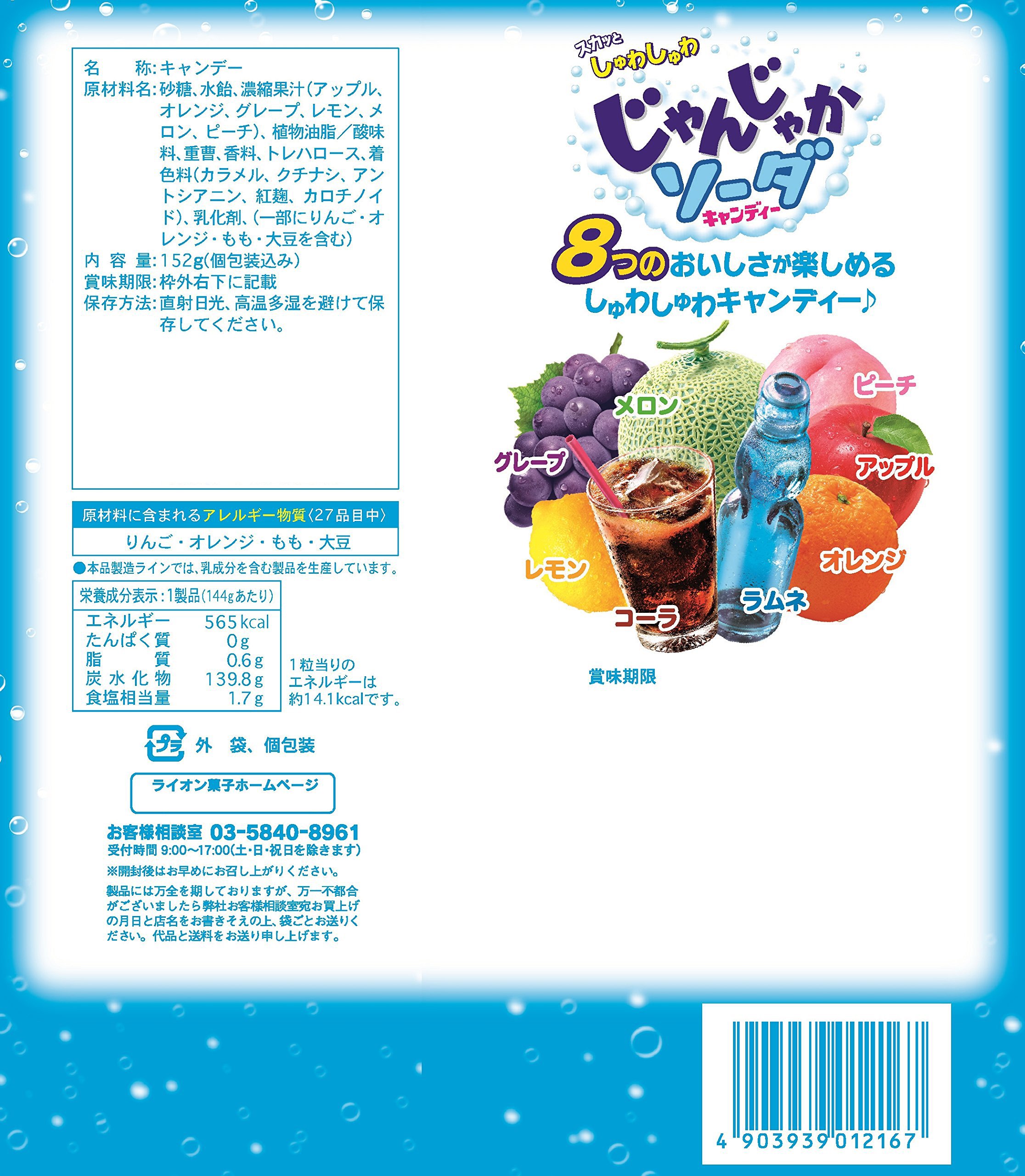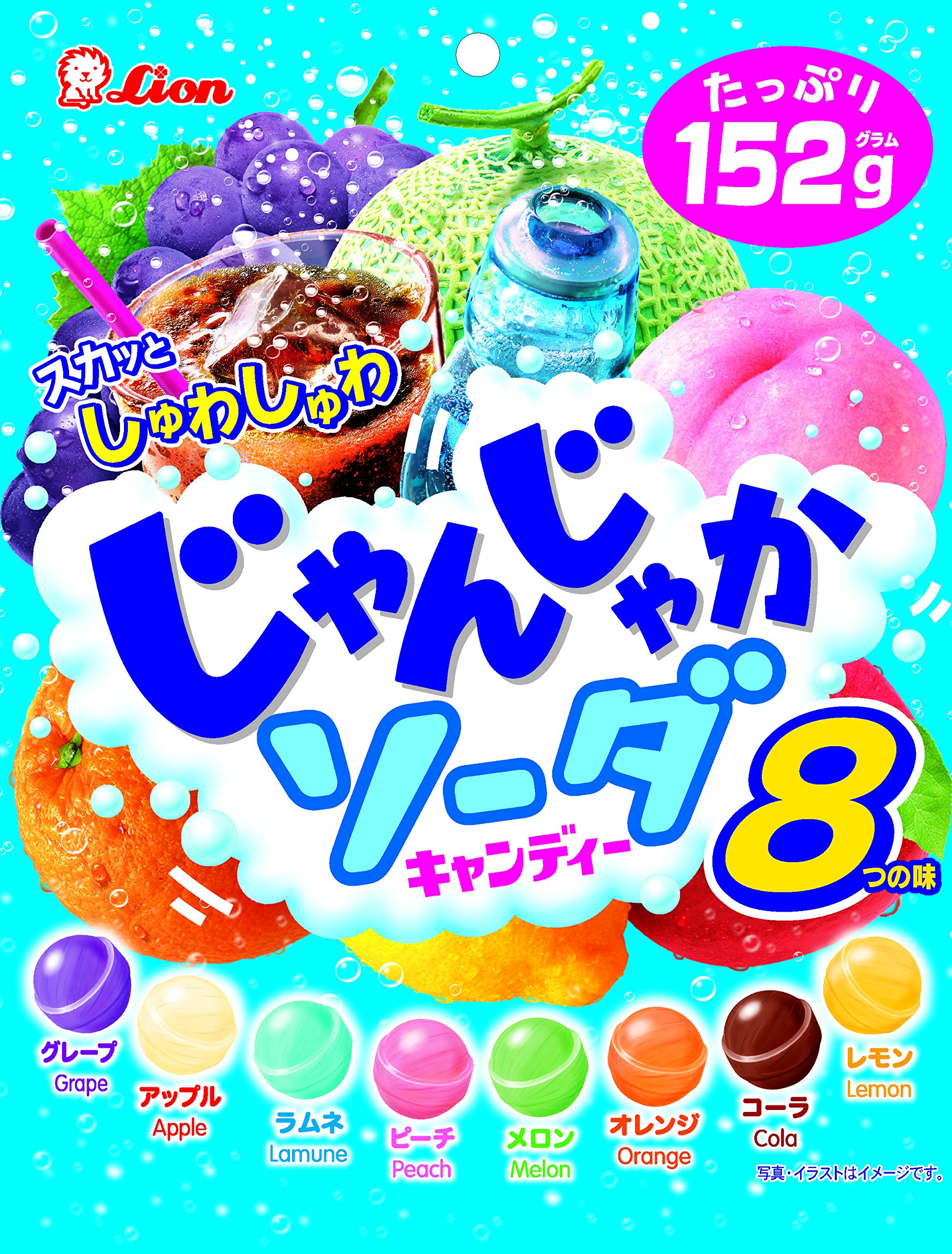 It is a luxurious assort that you can enjoy the taste of ramune, cola, melon, lemon, orange, peach, grape and apple.