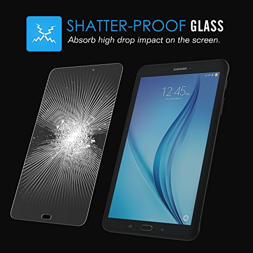 -. Feature : Premium grade Tempered Glass Screen Protector designed specifically for Samsung Galaxy Tab E 8.0 inch tablet for perfect protection on touch screen. / 9H hardness offers protection from scratch, crash, Shock-resistant of the watch, 0.33mm thickness helps maintain the original touch experience, 90% light penetration ratio preserves the original viewing quality. / Easy to clean Oleophobicity coating reduces fingerP.R.Ints and oily streaks. / Advanced fitting technology makes convenience for the fitting and removal. / The Anti-bubble silicone resin layer is self-adhesive which allows for an easy dry installation.