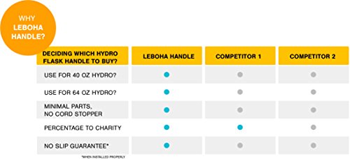 Leboha Wide Mouth Hydro Flask Handle, Strongest Hydro Flask Paracord Handle For Wide Mouth Sizes 12oz, 16oz, 18oz, 20oz, 32oz, 40oz and 64oz, Great Handle For The Growler.