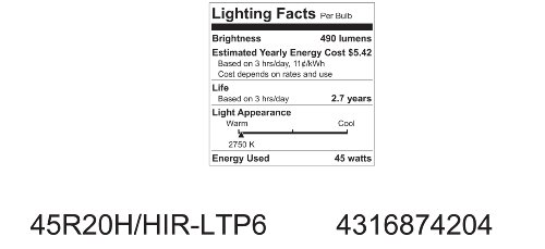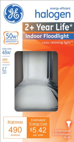 GE Lighting 74204 Energy-Efficient Halogen 45-Watt (50-watt replacement) 490-Lumen R20 Floodlight Bulb with Medium Base, 1-Pack