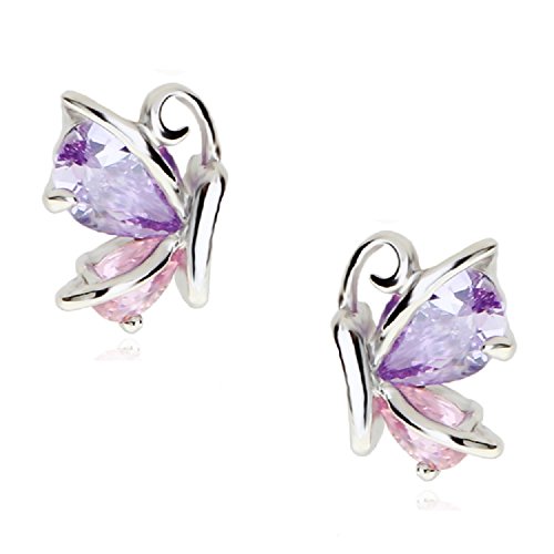 -. Title : 18K ホワイト ゴールド メッキ スタッド イヤリング スワロフスキー ピンク パープル クリスタル バタフライ