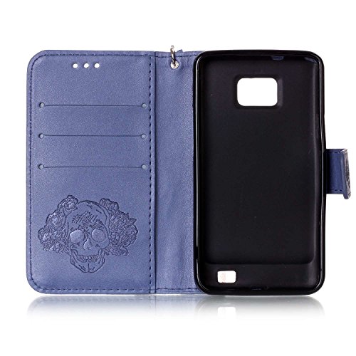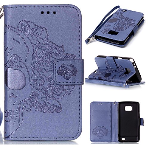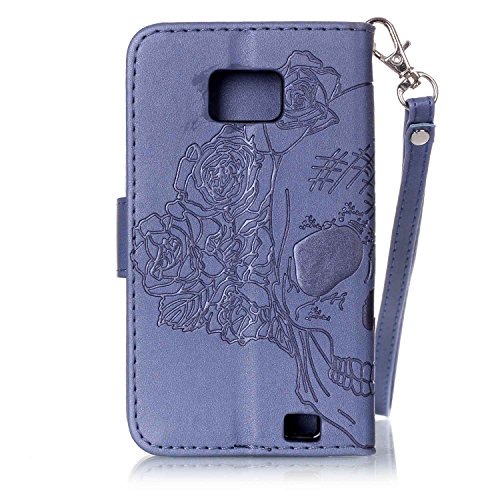 Cozy Hut Samsung Galaxy GT-I9100 Hulle, Samsung Galaxy S2 SII Case, Cozy hut Samsung Galaxy S2 SII GT-I9100 (4,3 Zoll) Drucken(Rosen-Schadel)PU Ledercase Tasche Hullen Schutzhulle Scratch M
