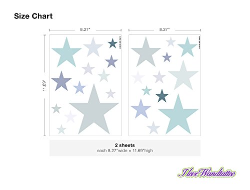 I-love-Wandtattoo WAS-10452 Wall stickers Kids "Pastel stars in delicate gray and green colors" 25 pieces, starry sky for gluing, wall tattoo, wall stickers, stickers, wall decoration