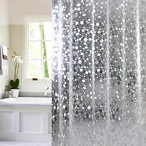 Meelino 3D Embossing Thickened EVA Cobblestone Shower Curtain Mildew Resistant Anti-Bacterial Semi-transparent Bath Curtain Liner Waterproof Water Repellent Clear (72’’×72’’, Cobblestone)