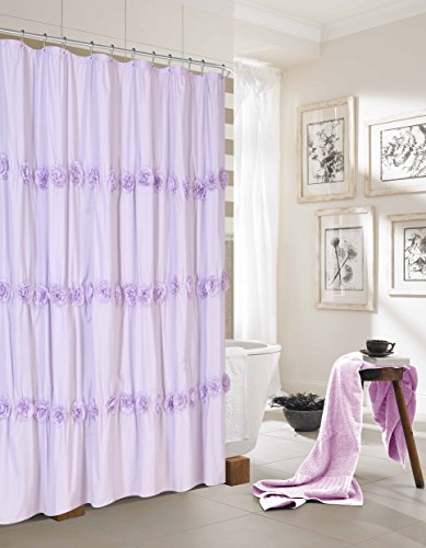 Dainty Home Rosette Fabric Shower Curtain with 3D Flowers, Purple