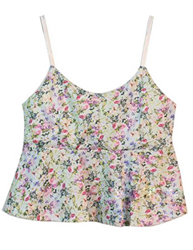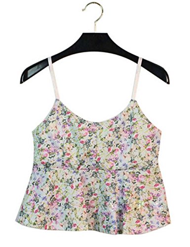 (Black Temptation)/Women/Outerwear/DIRECT FROM USA/Summer Lady's Ves t/Lovely Falbala Floral Series V-Neck Tank Tops/Light Green