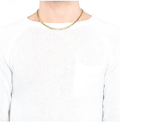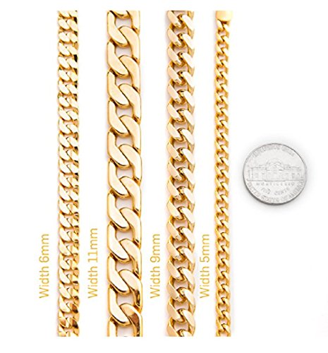 -. Feature : Real 24 Karat gold, laid over a heart of semi-precious metals. 5 mm Cuban Curb Link 18"-30". 20mls of 24 karat gold per chain - 10 times more gold than in the cheaper electroplate that changes color quickly / We only use 24k Gold (the purest form of gold) instead of 10k or 14k! No cheap metals like steel, copper (turns green) or nickel (toxic) as a usual fashion jewelry base 100% Unconditional Free Lifetime Replacement / Crazy low Amazon introductory prices for a limited time only! Ideal for men, women, teens. Makes a great GIFT (comes in a small cotton filled gift box) / Trade secret special semi-precious alloy of the best bonding metals ensures the Look Of Solid Gold and long life of the item. Email us for more size options, check out our matching Bracelets!