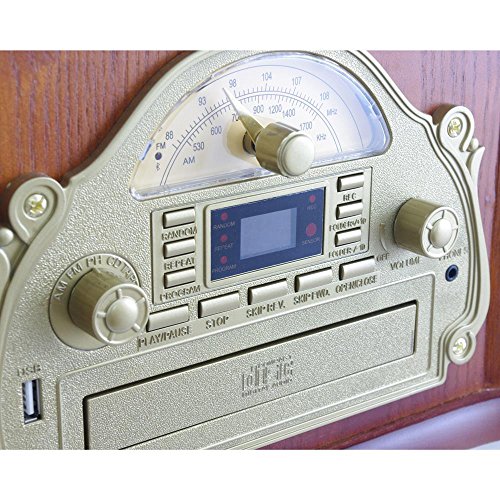 -. Title : Pyle Bluetooth Turntable Record Player , Built-in CD & Cassette Players, AM/FM Radio, Vinyl-to-MP3 Recording Brown (PTCDS8UBT)