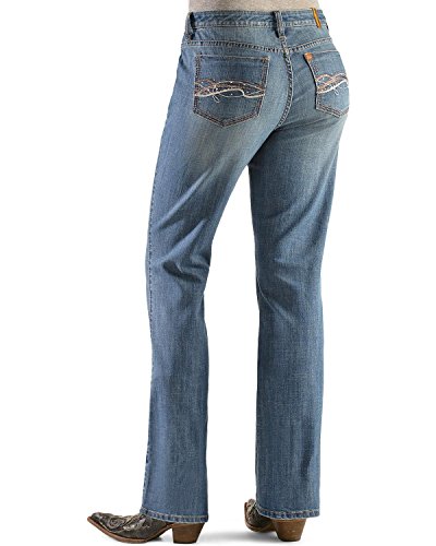 Look your best when you're on the saddle or dancing the night away at the honky tonk in a pair of instantly slimming jeans by Aura from the Women at Wrangler. The jeans feature a contoured waistband to reduce gaping and is designed to keep your tummy looking smooth and flat. The bootcut jeans are a flattering fit on any body type. Order a size smaller than your usual jeans size for the best slimming results. Aura from the Women at Wrangler has redefined what it means to shop for and fall in love with a pair of jeans. Based on proportional sizing, Aura from the Women at Wrangler jeans are designed to fit your ideal rise and leg length. They fit so well that we encourage you to try a size smaller than your normal size. Aura from the Women at Wrangler have specially placed side seams that are moved slightly forward for a slimming effecte find your aura. The dressing room drama is over; you've found your new favorite pair of jeansFeature