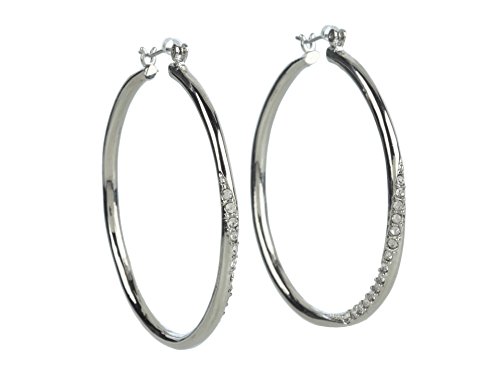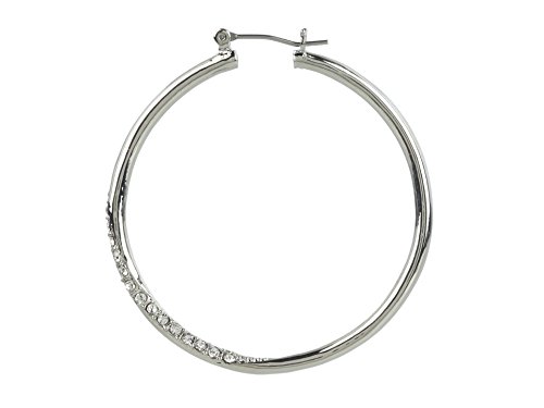 GUESS "Basic" Silver Stone Front Hoop Earrings