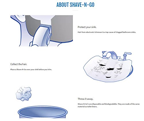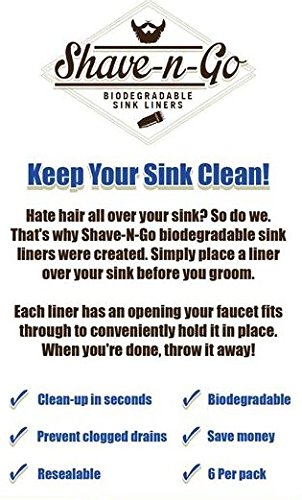 SHAVE-N-GO Biodegradable Shaving and Trimming Sink Liner, Clean Up in Seconds, Prevent Clogged drains 2 - 6 Packs For a Total Of 12