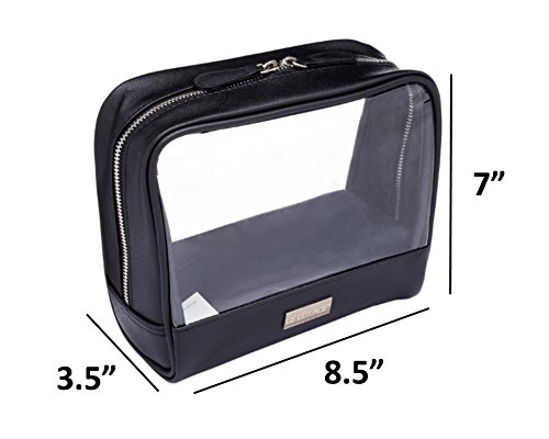 LUXURIOUSLY SPACIOUS DESIGN: Measuring 8.5 inches long by 7 inches tall and 3.5 inches wide, standard 3-ounce travel bottles and over-sized travel must-haves, such as electric toothbrushes and combs, fit comfortably