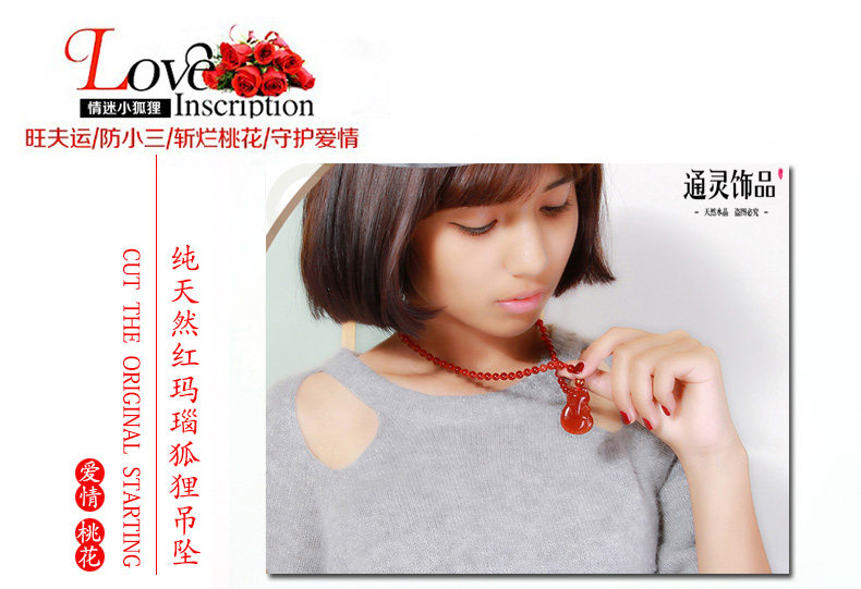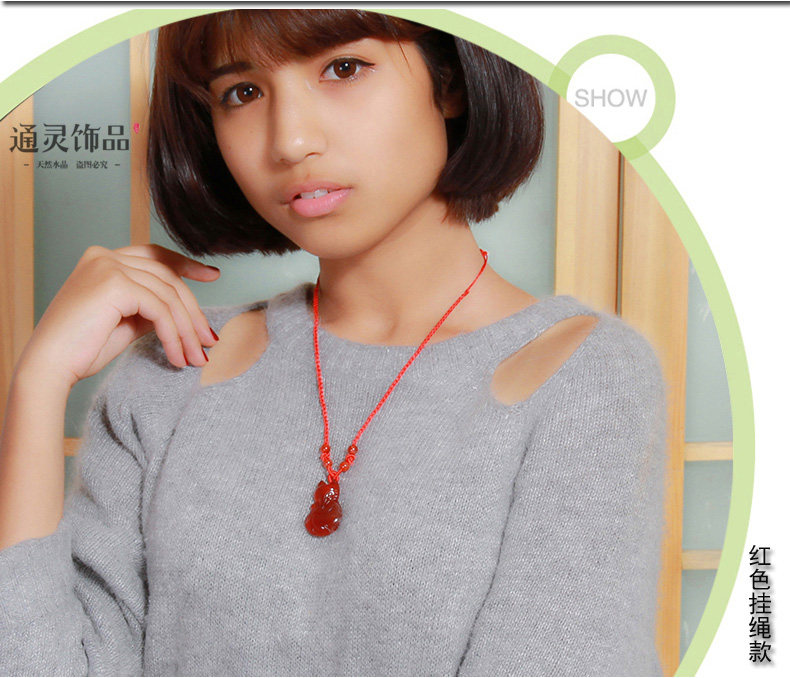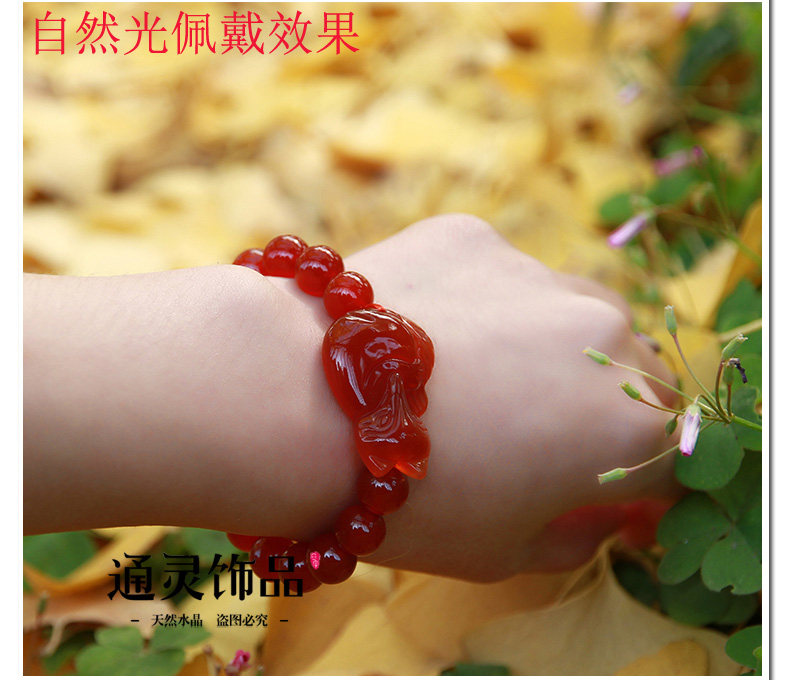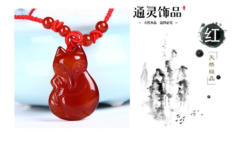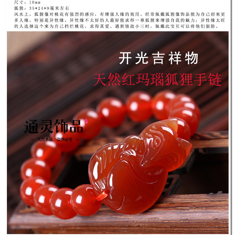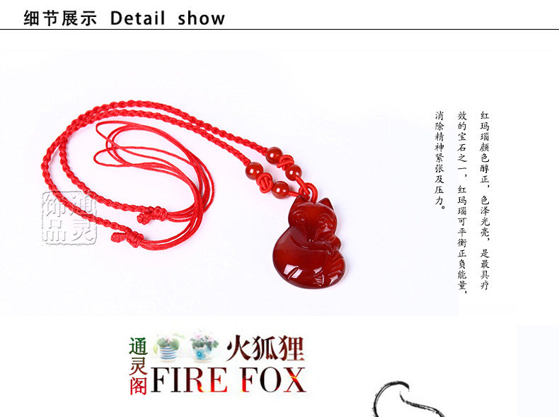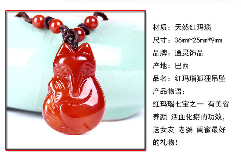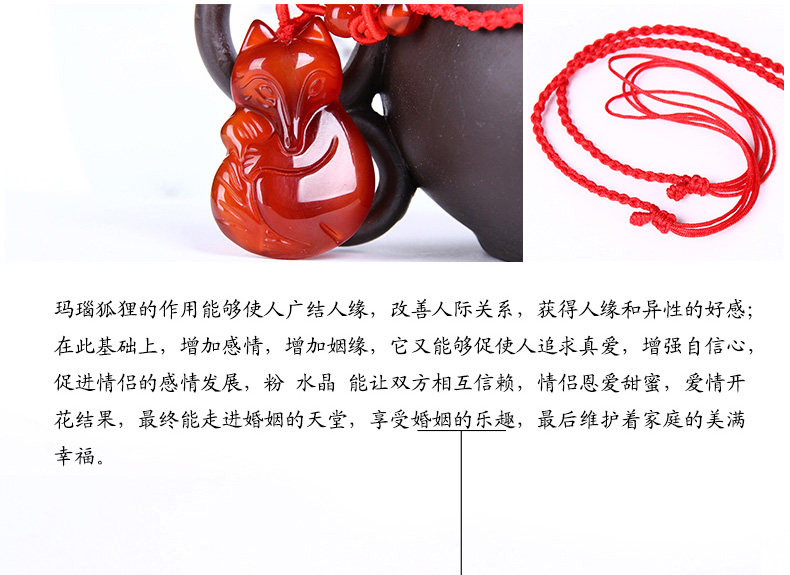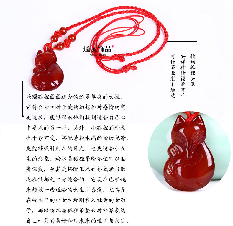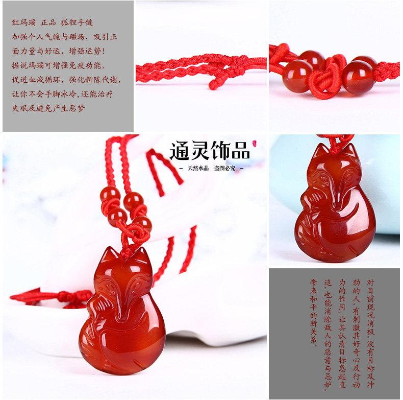 开光天然红玛瑙狐狸吊坠女水晶手链情侣项坠转运旺夫生日礼物