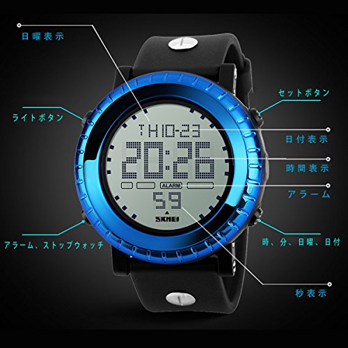 -. Feature : デジタル時計:ファッショナブルなスポーツダイヤルのデザイン、軍事的な見通し。 大型のダイヤルと数字が点灯していると、暗くて明るく明瞭な時間表示が見えます。 / メンズウォッチ:男性、特にスポーツ、耐衝撃性、ストップウォッチ、LEDバックライト機能を好む人へのアピールは、あらゆる種類のスポーツや日常使用に最適です。 / 耐衝撃性:ランニング、登山、釣りなどのアウトドアスポーツとアウトドアスポーツに最適です。 柔らかいシリコンのストラップと非常に着用して快適。 / 多機能時計:カレンダー月/日/日付、アラーム、防水、LEDディスプレイ、耐衝撃性、ストップウォッチ、バックライト。 / すべての行事のために魅力的です。 素晴らしい見た目の時計、あなたの親戚や友人のための大きな贈り物。
