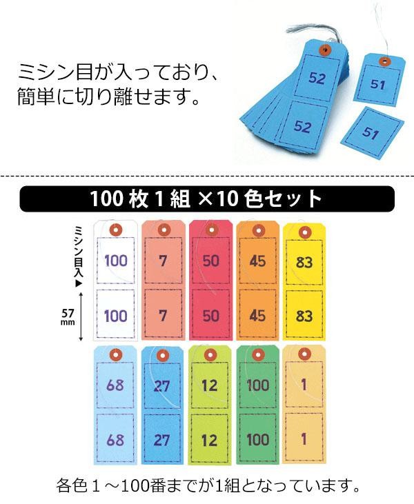 仕様包装形態:100枚袋入(1~100)×10色箱入