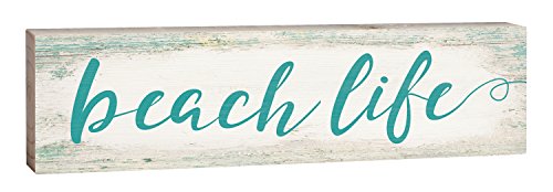 Beach Life Turquoise Script Design White Wash 2 x 6 Inch Solid Pine Wood Paul Bunyan Toothpick Sign