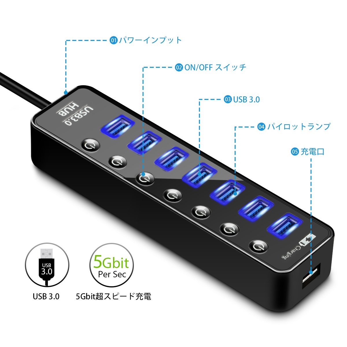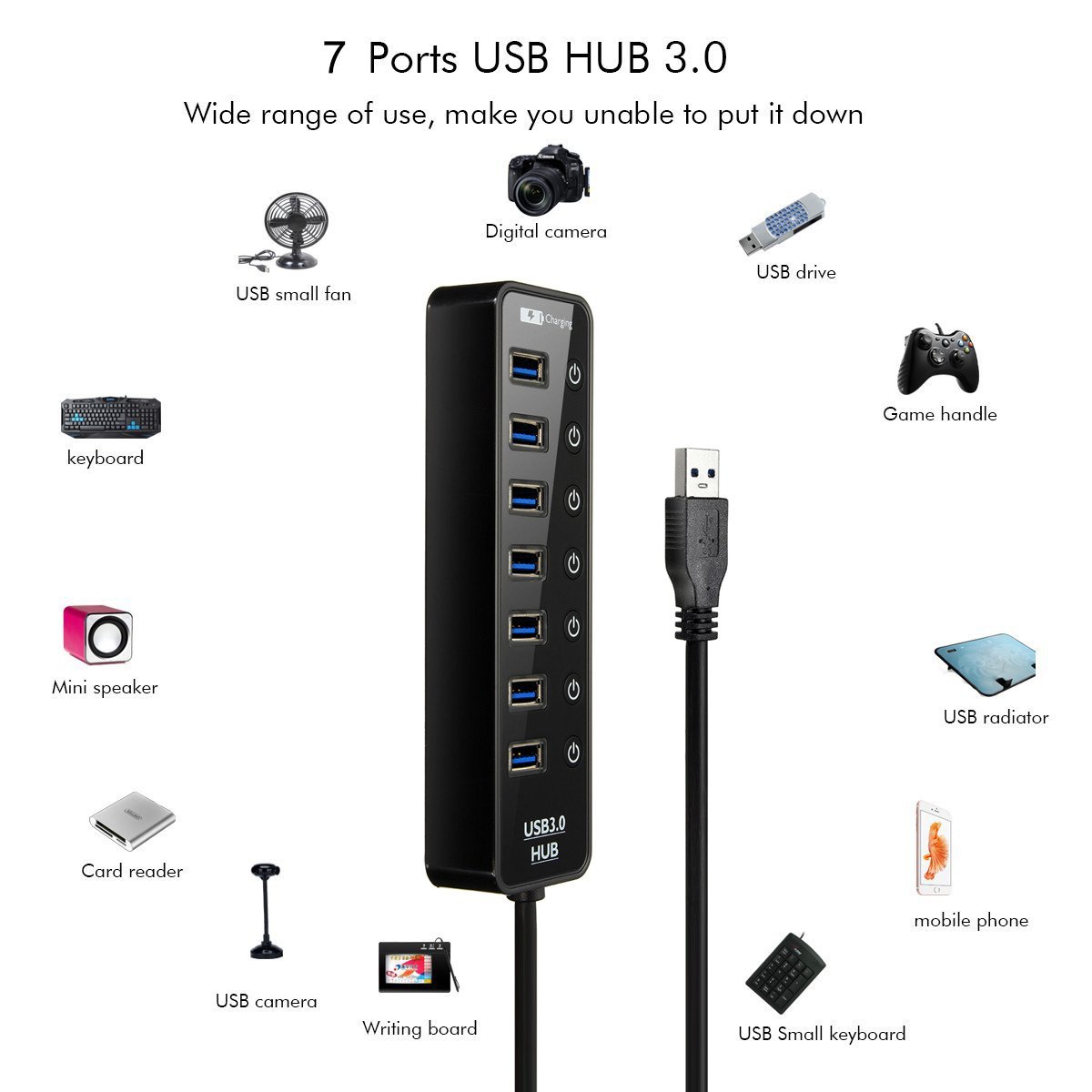 Product features: 7 port USB 3.0 interface, enhanced fast charge interface