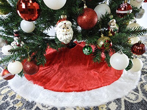 Red and White Plush Christmas Tree Skirt - 40 Inch by Country Silk