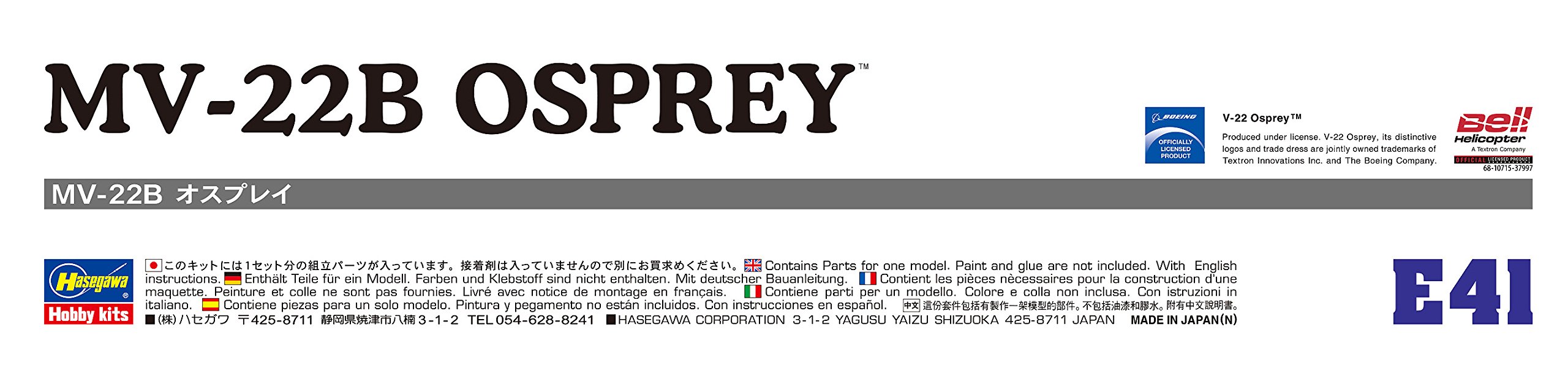 HASEGAWA 01571 1/72 MV-22B Osprey USMC