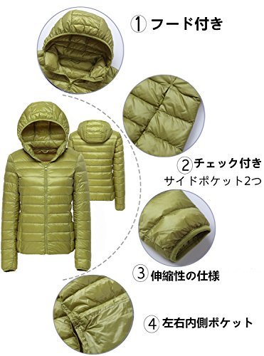 -. Title : Minghe レデイース ダウンジャケット 軽量 ポケッタブル ダウンコート フード付き カラフル ライト 防寒着 アウトドアウェア 秋冬 バイク 登山 カジュアル 収納袋付きグリーンM(=日本S)