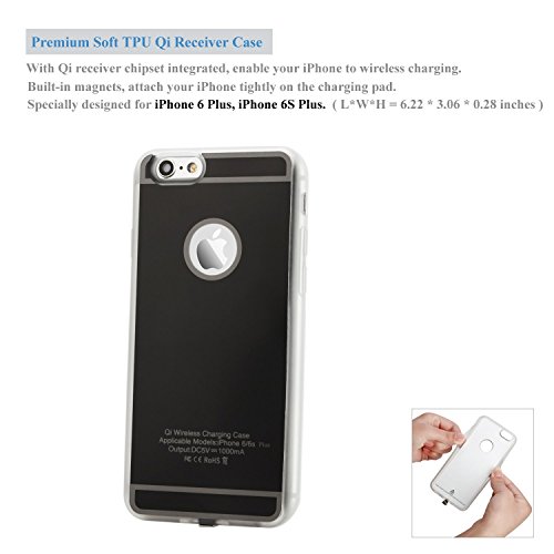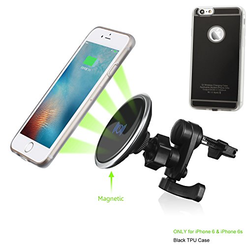 Magnetic Qi Wireless Car Charger Air Vent Mount for iPhone 6 Plus, iPhone 6S Plus- Including Flexible Qi Wireless Receiver Case and Aluminum Wireless Charger Pad (black)