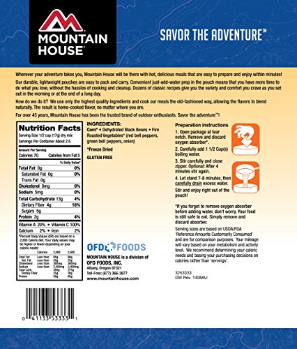 Transform ho-hum camping food into meals fit for royalty with the Mountain House fire roasted veggies. Infused with a smoky flavor, this versatile combination of grilled vegetables can be used as a side dish with your catch of the day, tossed with pasta or layered in a sandwich.Feature