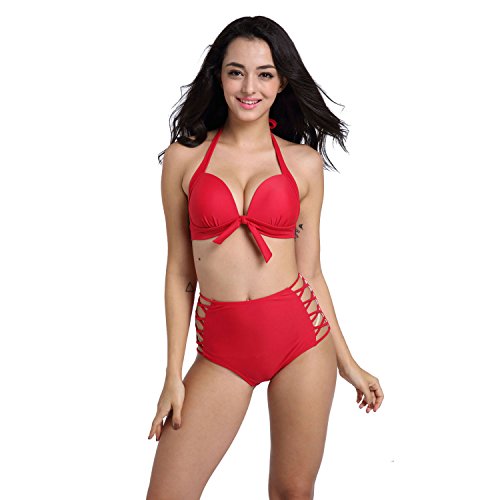 -. Title : JOLINE レディースビキニ ハイウエスト 透かし彫りデザイン胸元に総柄 小胸でもバストをしっかりボリュームアップ 旅行へセパレーツ 水着