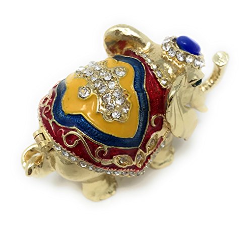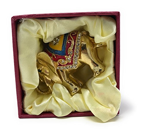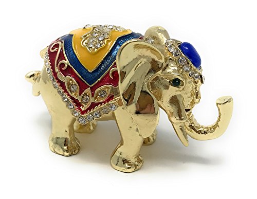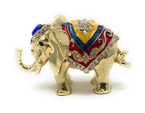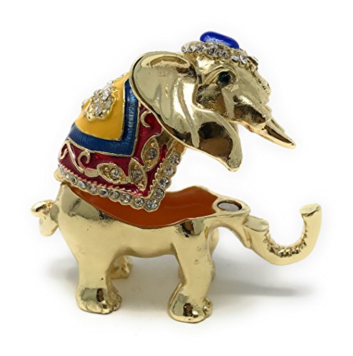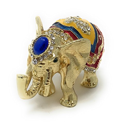 Enameled Decorated Good Luck Elephant Mini Trinket Box by Kubla Craft, Accented with Austrian Crystals