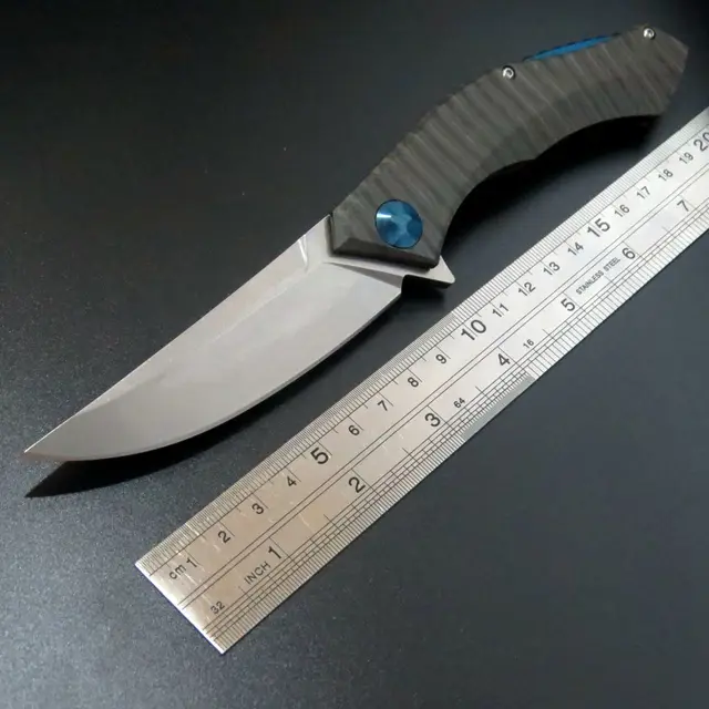 | [해외] Efeng 블루 문 접는 칼 D2 블레이드 TC4 티타늄 핸들 볼 베어링 플리퍼 전술 캠핑 나이프 |