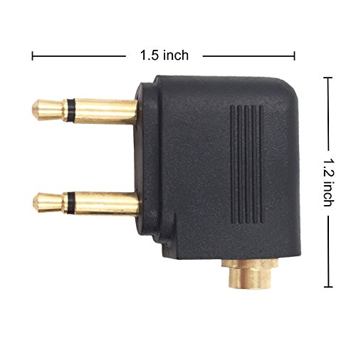 Note: Some new airplane types accept the standard headphone plug directly, no need for the adapter, though it's useful on most airlines.