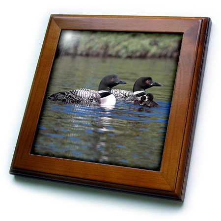 3dRose ft_3106_1 Family of Three Loons Framed Tile, 8 by 8-Inch