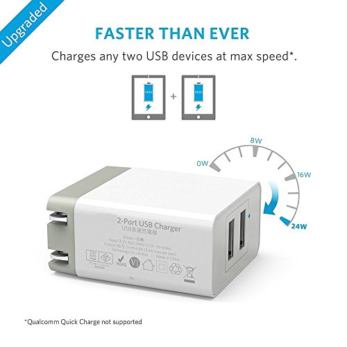 Dual port desing -- Fast Charging Technology make you charge your ipad/tablet and iphone/smartphone at the same time, and charge speed up to 2.4A, High efficiency, Support fast charge