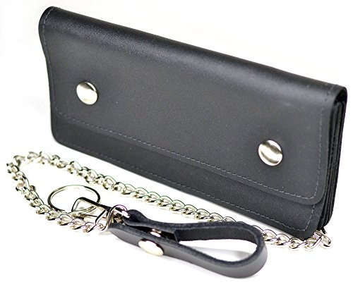 -. Title : Men's Genuine Leather Biker Wallet with Chain Zipper Stud Trucker Purse Wallet