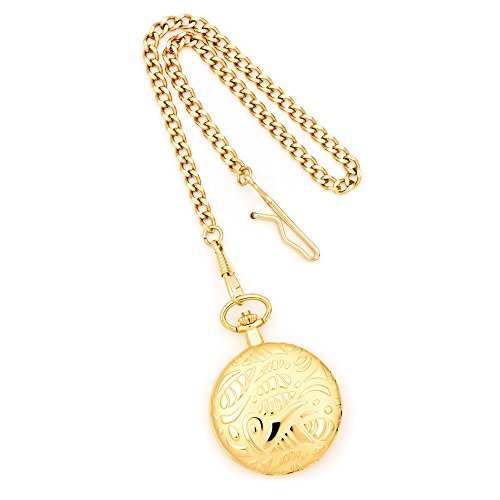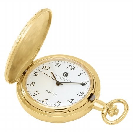 Amazon.com This Charles-Hubert Paris pocket watch comes with a lifetime movement warranty against manufacturing defects. Features include a 17 jewel mechanical movement, 42mm 14kt gold-plated hunter case, matching chain, white dial with arabic numerals, and a deluxe gift box. 0
