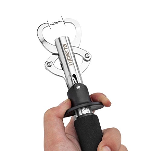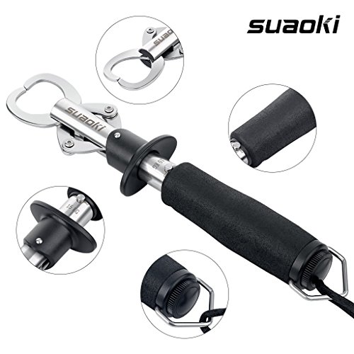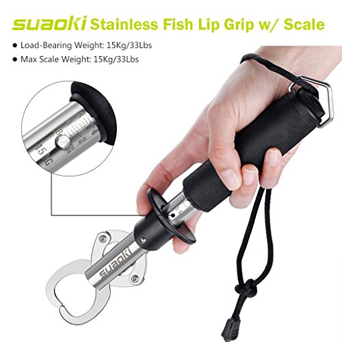 Suaoki Stainless Steel Fish Lip Gripper Grabber Grip Two-sided Trigger Tool Fish Holder with Scale Max 33 lbs / 15kg EVA Foam Handle Adjustable lanyard