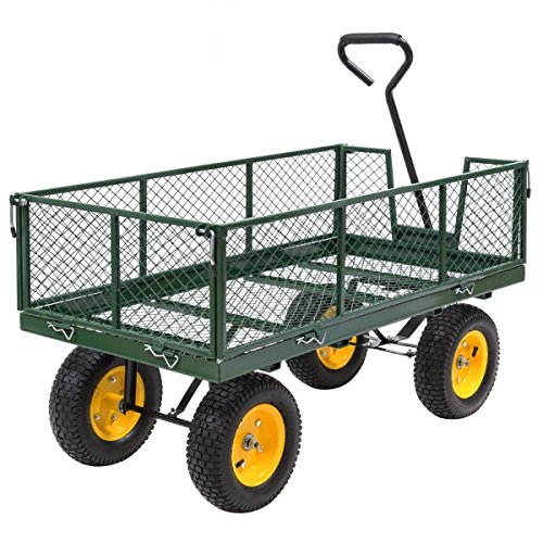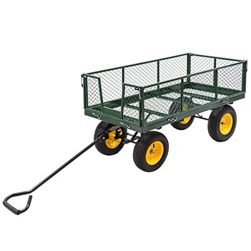 Studio : Apontus Publisher : Apontus Product Description This our new garden trolley cart, which is perfect for lawn, garden, farm and barn use. It has a 1000lbs load capacity, which is made of steel and comes with folding, removable sides for flatbed use. To facilitate loading and unloading of heavy items from the carts, the sides of the basket fold down, and can be removed entirely for flatbed wagon applications. This garden trolley cart is designed for transporting supplies, equipment or materials. The cart comes with a 32" steel handle with a d-style grip, and four 13" rubber tires to resist abrasion and absorb shock while rolling on assorted indoor and outdoor terrain. The padded handle makes hauling heavy dirt, mulch, gravel or plants easy with minimal fatigue. 0