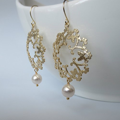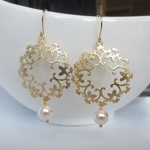 -. Title : 14K Gold Flower and Pearl Earrings, Wedding Earrings, Bridesmaid Jewelry by Elle Jewels