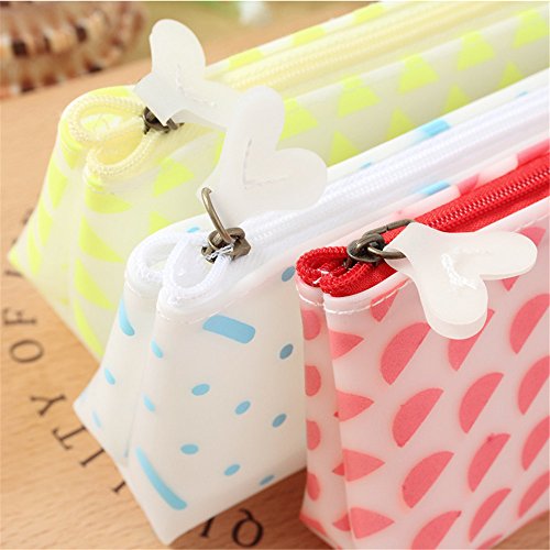 Katoot@ 3pcs New Fresh Printing Pencil case for girls Kawaii Silicone Candy color silicone pen pouch bag Korean stationery school supply