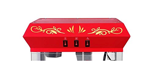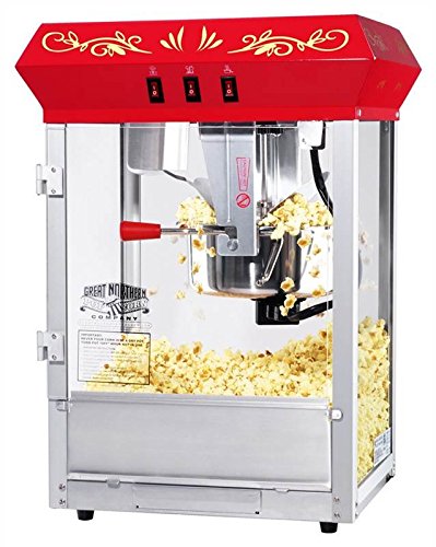 -. Binding : Kitchen -. Brand : Great Northern Popcorn Company -. Color : Red -. EAN : 0859767002266 -. Feature : Deluxe model with 3 control switches and 850 watts / Popcorn supply storage in base / Switches include: spot light warmer, stirrer and pot heater / 16" Ball bearing wheels for smooth mobility / Works on standard 110 volt -. Label : Great Northern Popcorn Company -. Manufacturer : Great Northern Popcorn Company -. Model : 6128 All Star GNP-800 Red Full -. MPN : GNP-800 -. NumberOfItems : 1 -. PackageQuantity : 1 -. PartNumber : GNP-800 -. ProductGroup : Kitchen -. ProductTypeName : KITCHEN -. Publisher : Great Northern Popcorn Company -. Size : 8 oz -. Studio : Great Northern Popcorn Company -. Title : Great Northern Popcorn Red 8 Ounce All Star GNP-800 Classic Style Popcorn Machine with Cart -. UPC : 859767002266 -. Warranty : 5 years